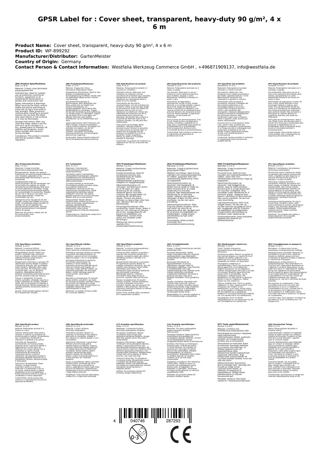Abdeckplane, transparent, stark 90 g/m², 4 x 6 m