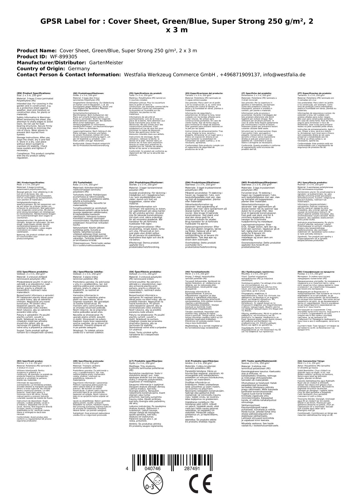 Abdeckplane, grün/blau, super stark 250 g/ m²,2 x 3 m