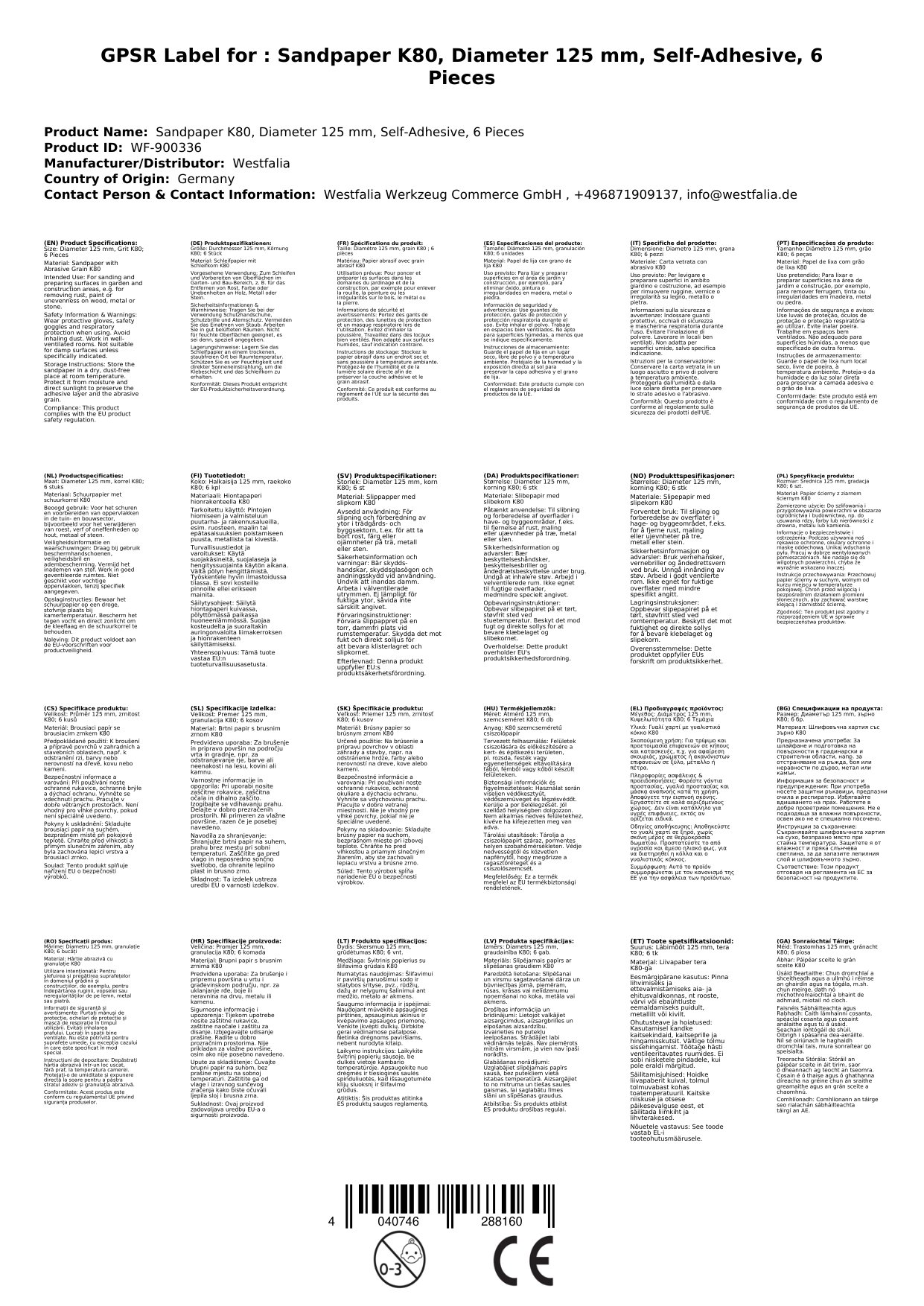Schleifpapier K80, Durchmesser 125 mm, selbstklebend, 6 Stück