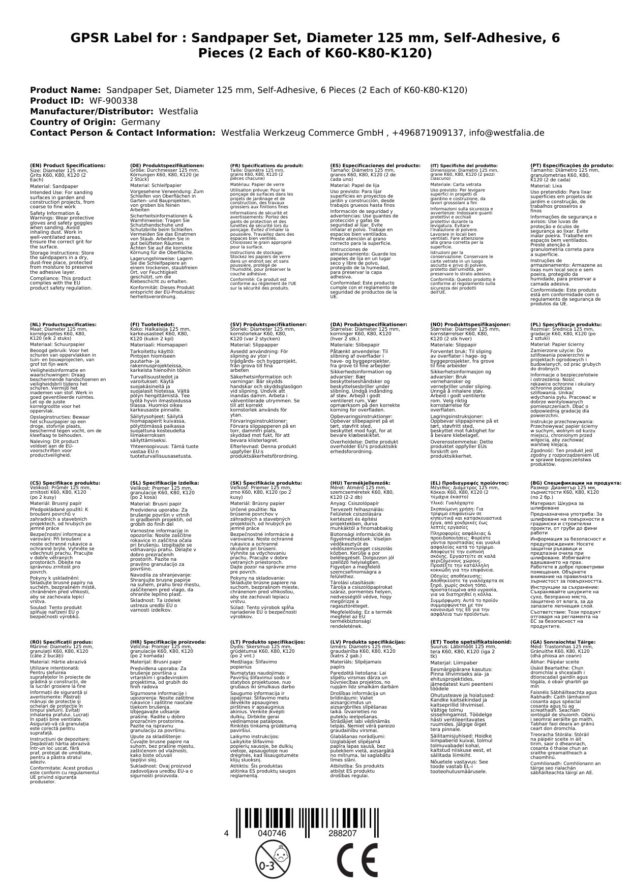 - Schleifpapier Set, Durchmesser 125 mm, selbstklebend, 6 Stück (je 2 x K60-K80-K120)