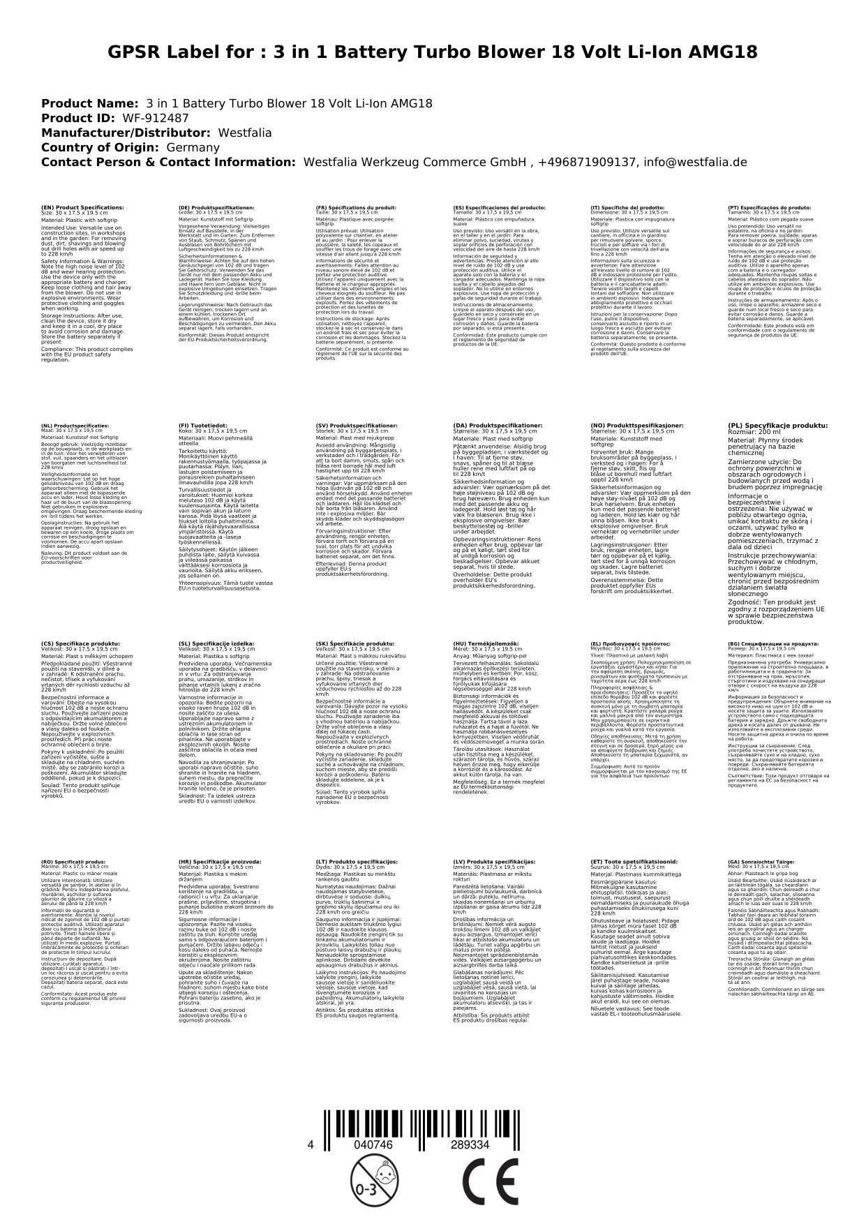 Das Westfalia Multi-Funktions-Gebläse schaltet den Turbo ein beim Saubermachen. Inklusive dreier Aufblasadapter ist das Gerät vielseitig einsetzbar auf der Baustelle, Garten und in der Werkstatt. Befreien Sie die Baustelle von Staub und Schmutz, entfernen Sie Späne in der Werkstatt oder blasen Sie Bohrlöcher aus: Mit bis zu 228 Stundenkilometer.