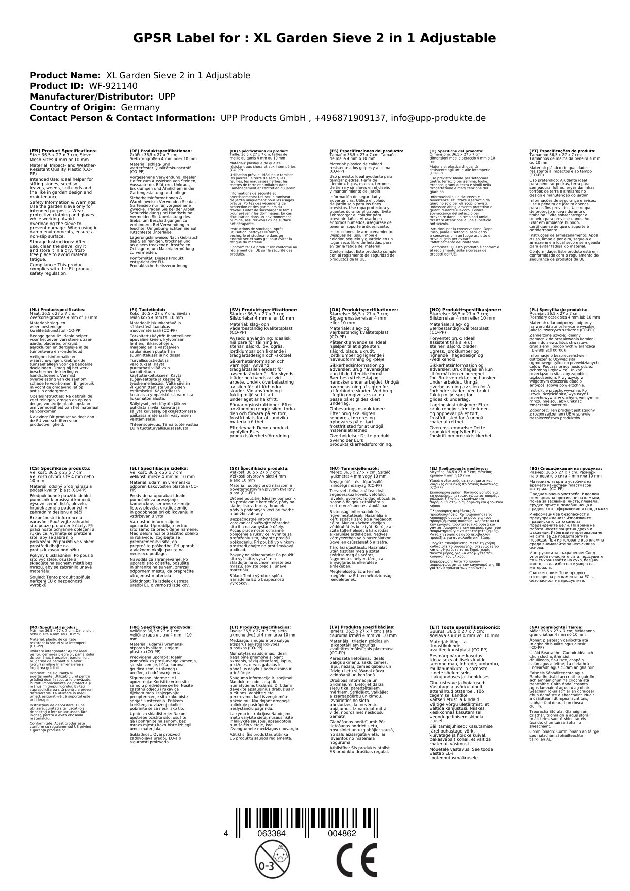Stellen Sie eine Frage, um mehr über das Produkt zu erfahrenDie Siebkorngröße ist durch die neuartige Gitter Schiebfunktionstechnik einfach verstellbar. Wählen Sie in Sekundenschnelle zwischen zwei Siebkorngrößen (4 oder 10 mm). Der ideale Helfer beim Aussieben von Steinen, Aussaaterde, Blättern, Unkraut, Erdklumpen, uvam.