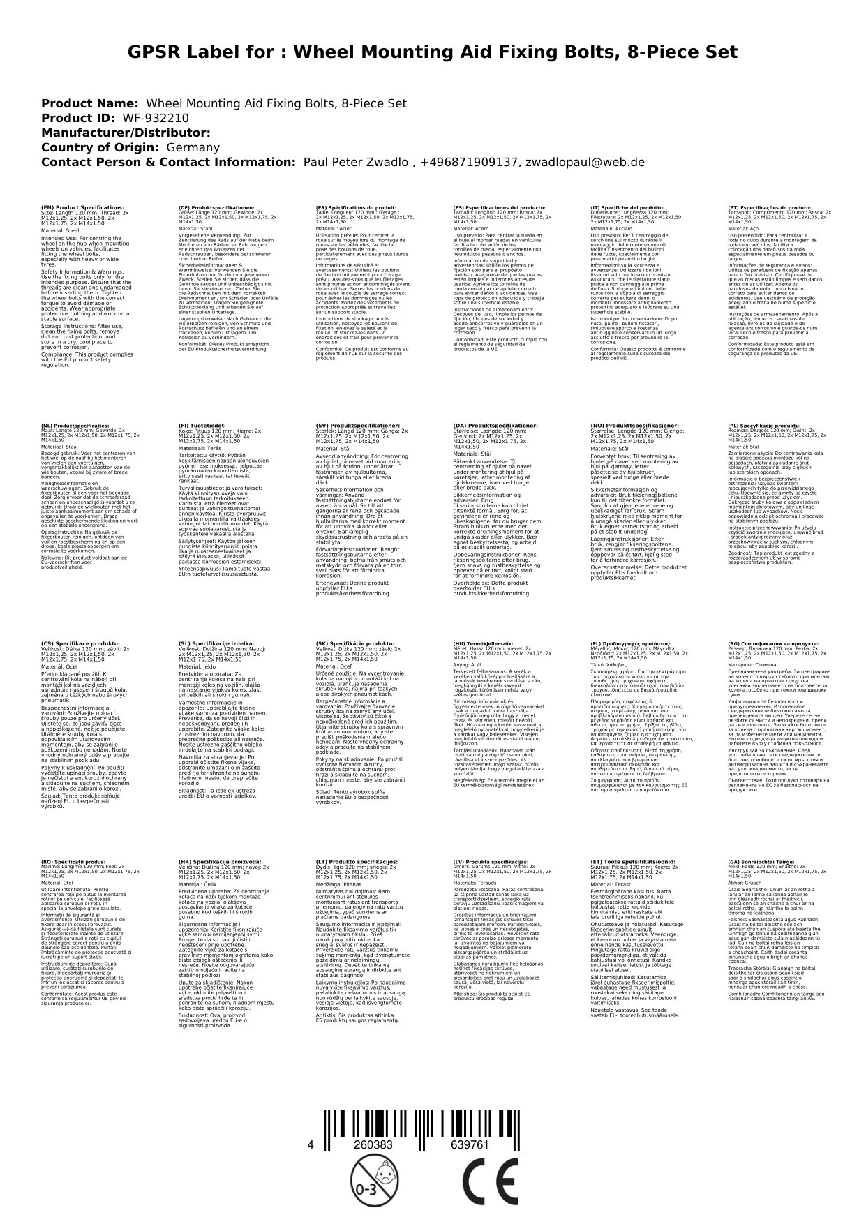 Rad Montagehilfe Fixierbolzen, 8-teiliges Set
