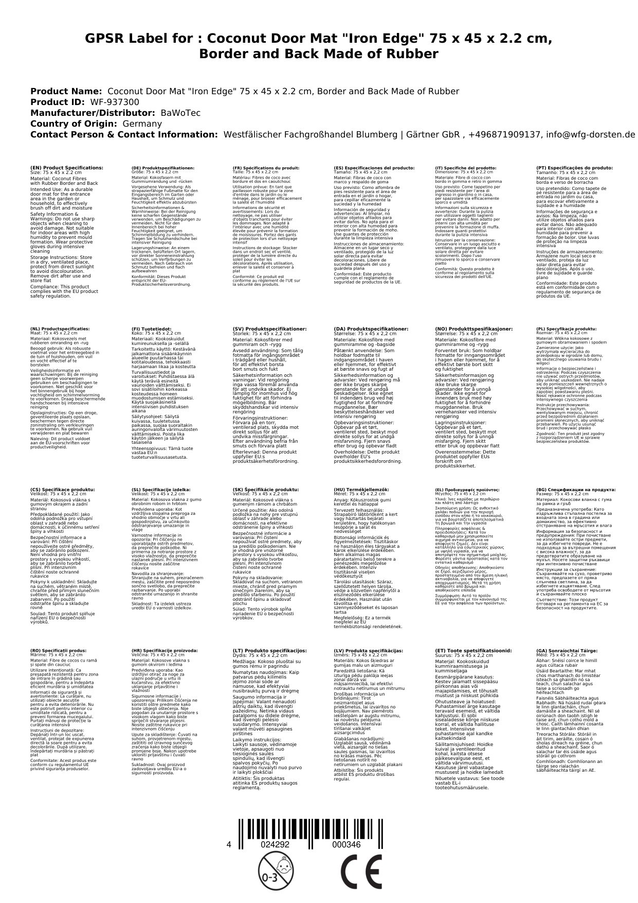 Kokos Fußmatte "Eisenrand" 75 x 45 x 2,2 cm, Umrandung + Rücken aus Gummi
