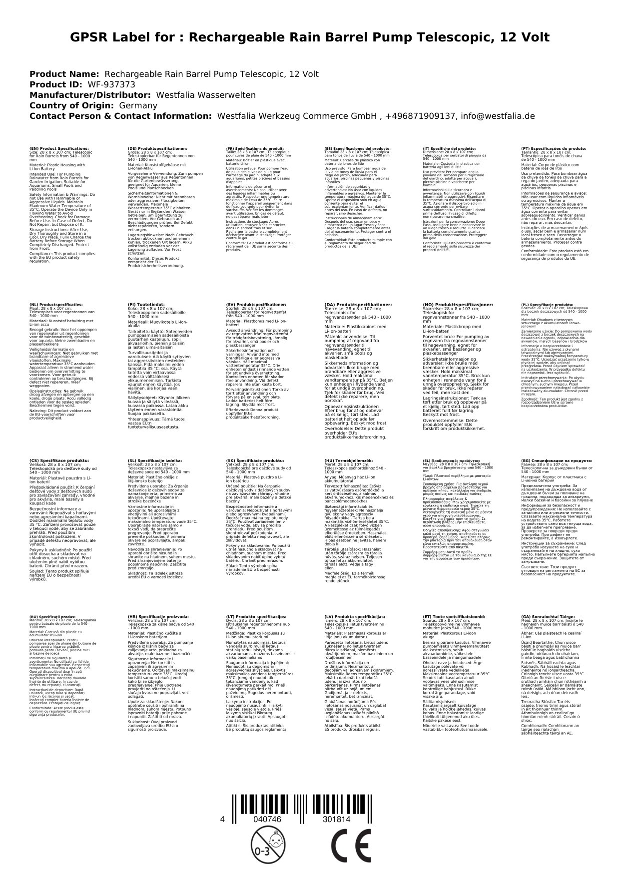- 1 x Akku-Regenfasspumpe teleskopierbar, 12 Volt