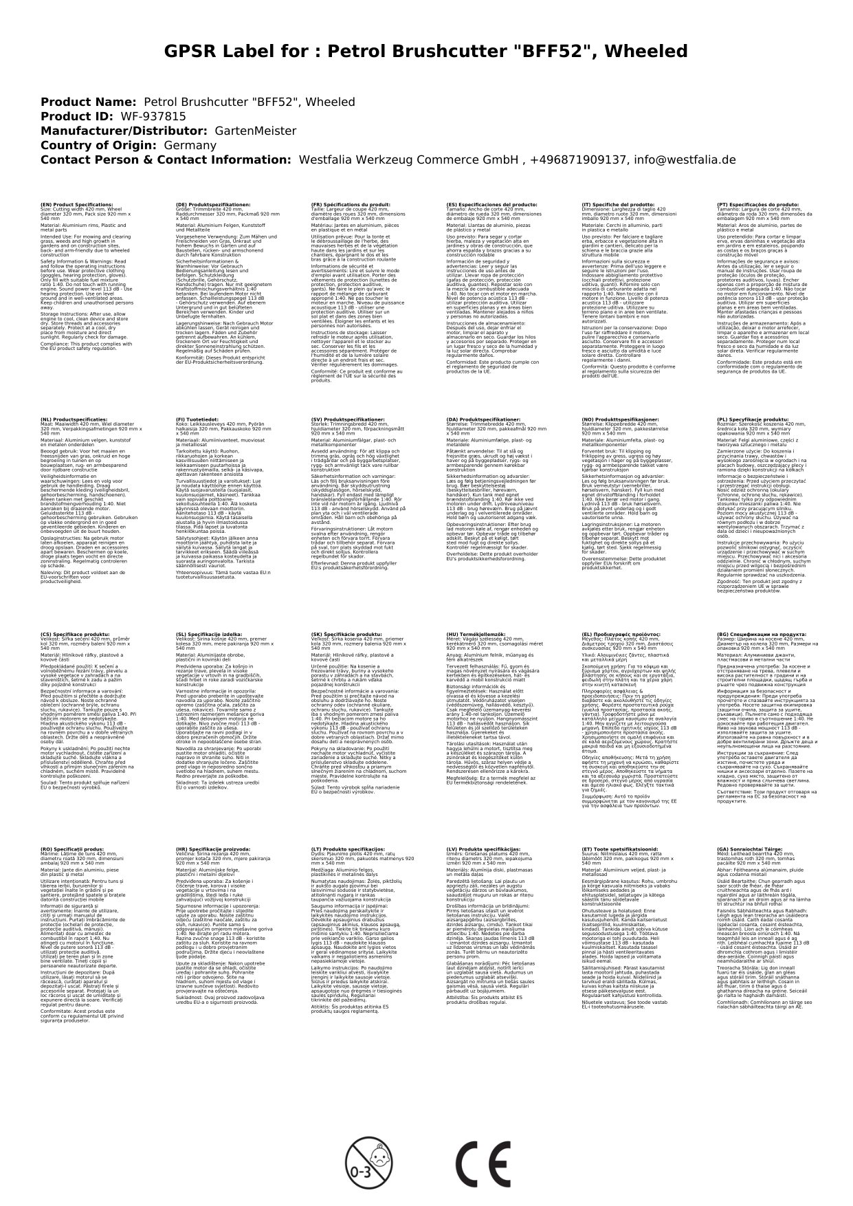 - 1 x Benzin-Freischneider "BFF52", fahrbar