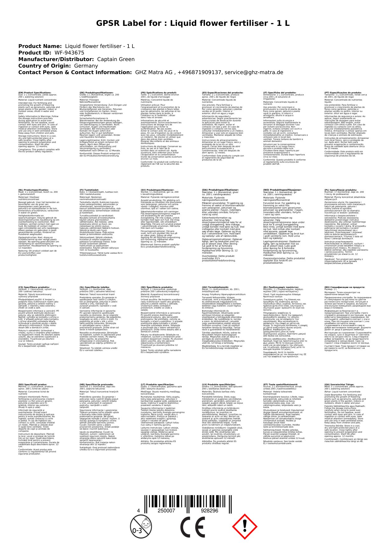 Stellen Sie eine Frage, um mehr über das Produkt zu erfahrenVerwandeln Sie Ihren Garten oder Ihre Wohnung in eine grüne Oase mit dem Captain Green Blumendünger Flüssigkonzentrat. Die hochergiebige Formel reicht für etwa 200 Liter Gießflüssigkeit und versorgt Ihre Pflanzen zuverlässig mit allen wichtigen Nährstoffen.