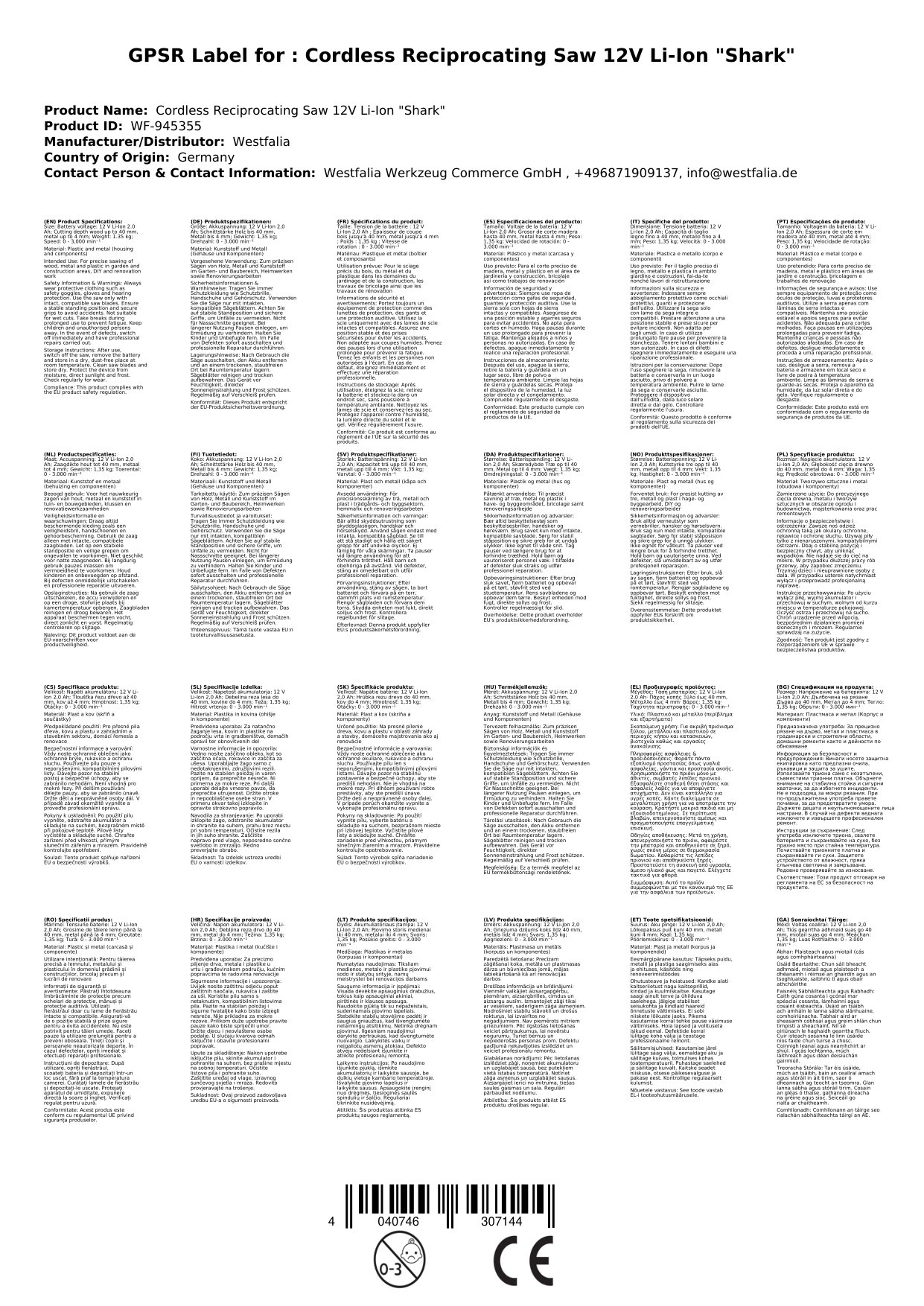 Akku Säbelsäge 12V Li-Ion "Shark"