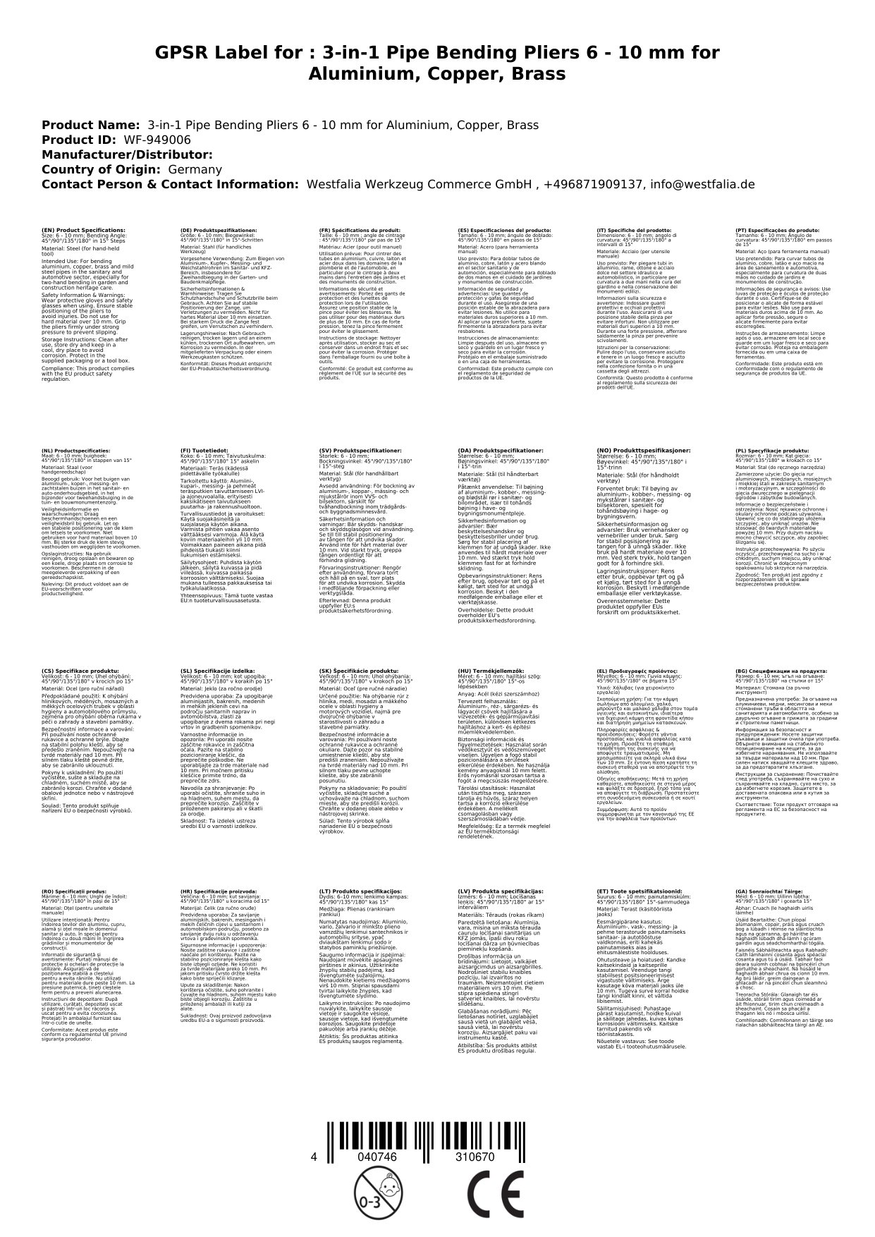 Stellen Sie eine Frage, um mehr über das Produkt zu erfahrenHandliche 3 in 1 Biegezange für die Zweihandbiegung von Kupfer-, Messing-, Aluminium- und Weichstahlrohren im Sanitärbereich. Auch einsetzbar für Bremsleitungen im KFZ- Bereich.