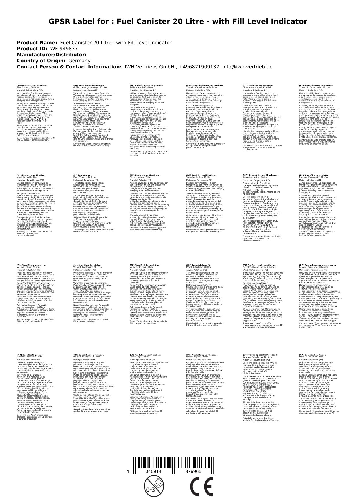 Der Kraftstoffkanister 20 Liter mit Füllstandanzeige ist der ideale Begleiter für unterwegs. Ob beim Camping, für Notfälle oder als Reservekanister für Ihr Fahrzeug – dieser Kanister bietet höchste Zuverlässigkeit. Dank der integrierten Füllstandanzeige wissen Sie jederzeit genau, wie viel Kraftstoff noch vorhanden ist.