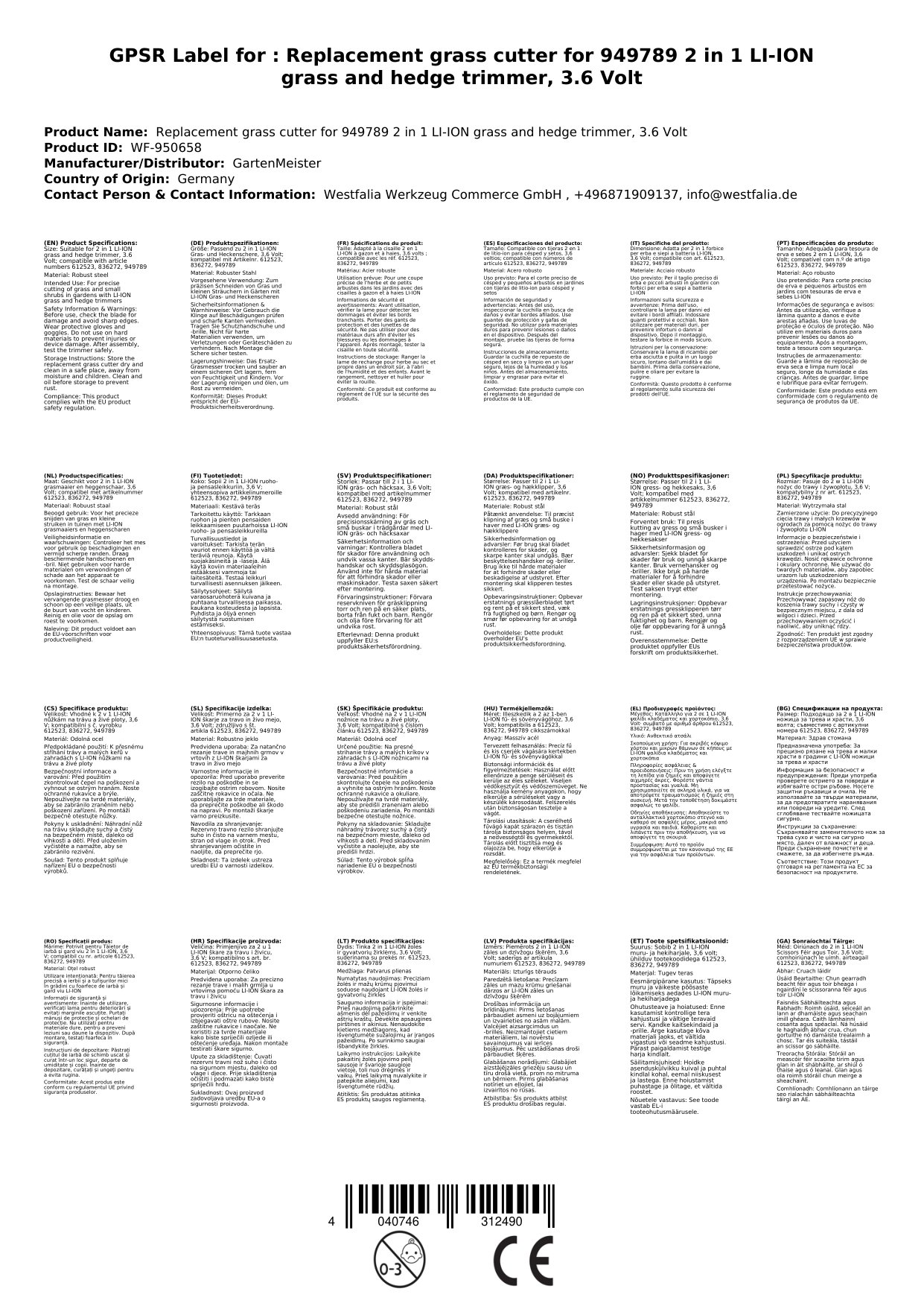 Ersatz-Grasmesser zu 949789 2 in 1 LI-ION Gras- und Heckenschere , 3,6 Volt