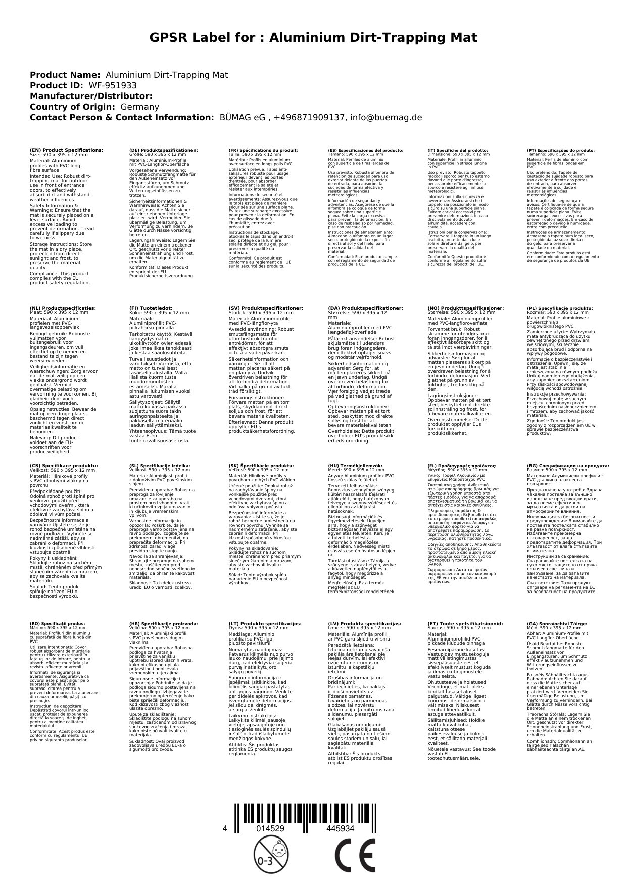 Stellen Sie eine Frage, um mehr über das Produkt zu erfahrenRobuste Schmutzfangmatte aus Aluminium-Profilen für jeden Außeneinsatz. Die spezielle PVC-Langflor-Oberfläche sorgt dafür, dass der Schmutz effektiv aufgenommen wird, während die witterungsbeständige Konstruktion Regen, Schnee, Wind und Sonne trotzt.