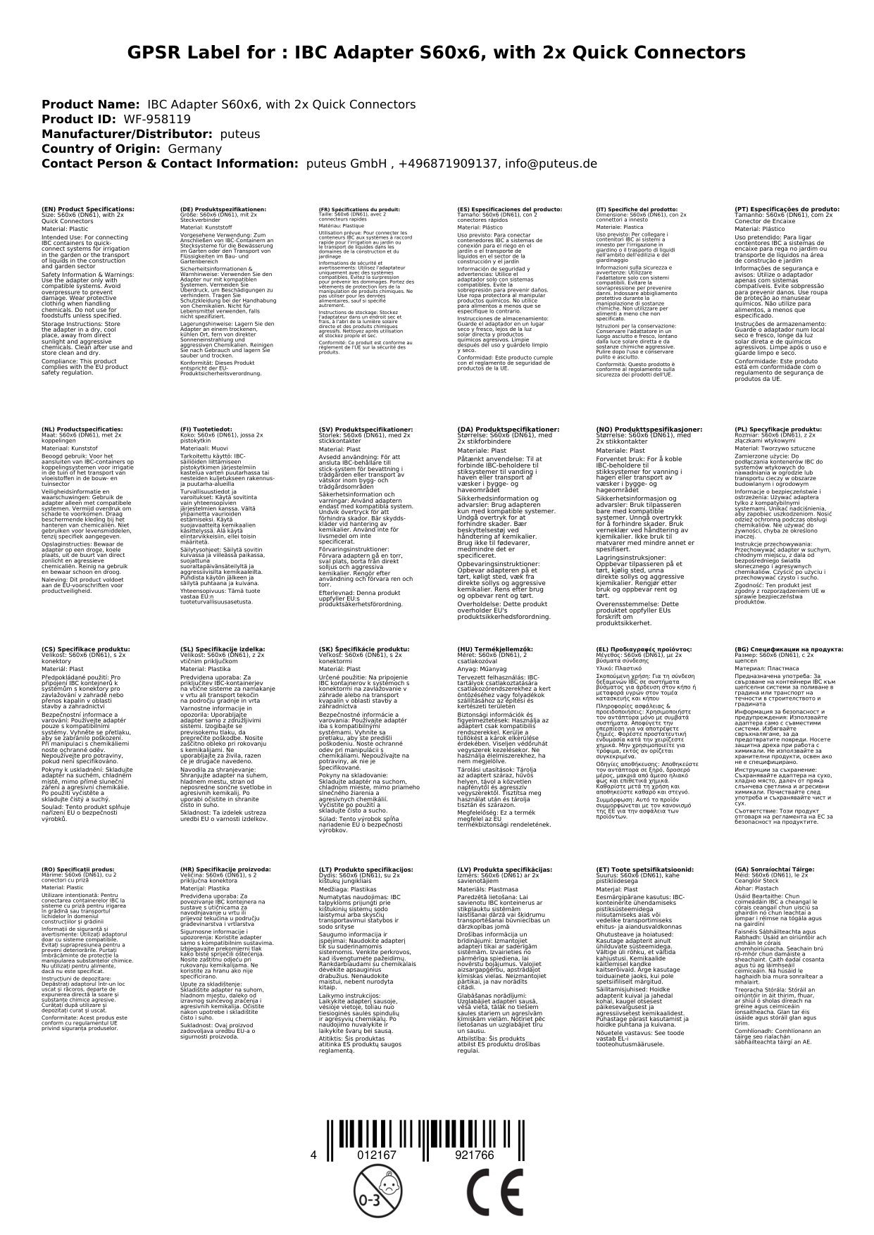IBC Adapter S60x6, mit 2x Steckverbinder