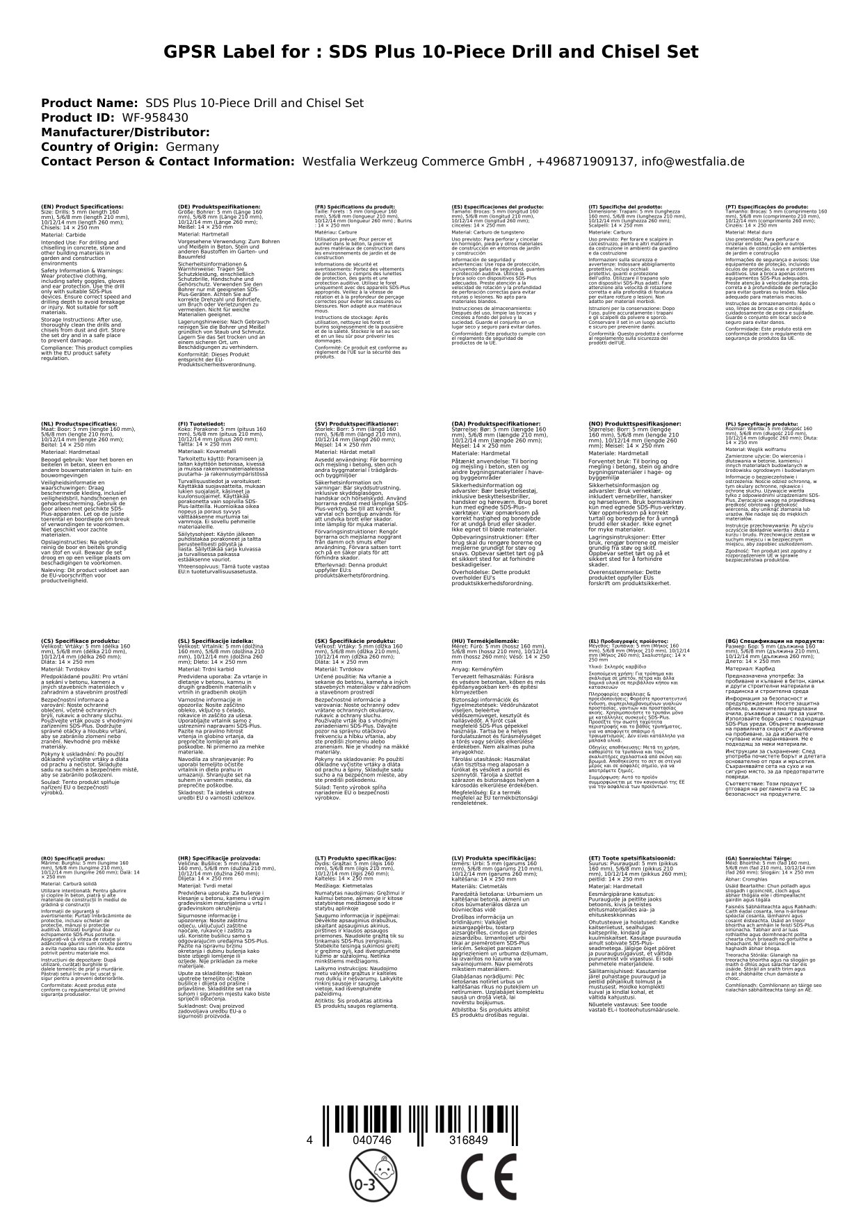 - 3× Bohrer: 5 / 6 / 8 mm; Länge: 210 mm