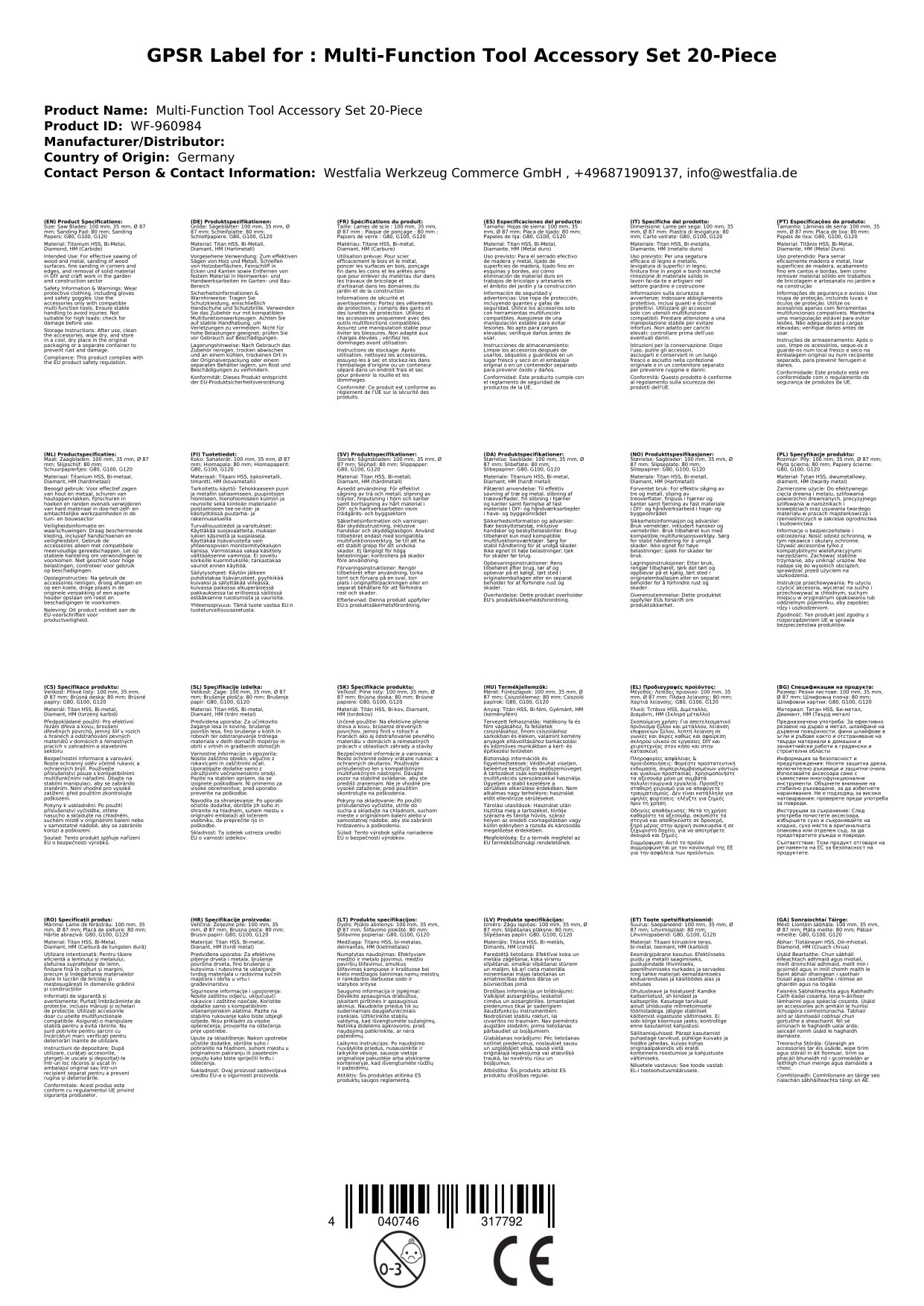 Immer mehr Heim- und Handwerker setzen auf Multifunktionswerkzeuge statt auf eine Vielzahl von Werkzeugen. Innerhalb von wenigen Sekunden kann das Zubehör getauscht und unterschiedliche Arbeiten ausgeführt werden. Das 20-teilige Set für das Multifunktionswerkzeug von Westfalia stellt somit die optimale Ergänzung dar.
