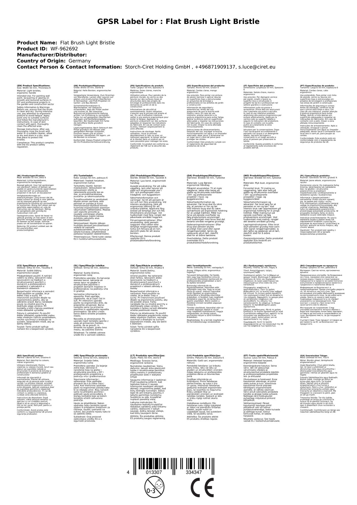 Ob Wandfarbe, Lacke oder Lasuren – dieser Pinsel ist vielseitig einsetzbar und liefert in jeder Anwendung optimale Ergebnisse. Die Borsten sind leicht zu reinigen, wodurch der Pinsel auch bei unterschiedlichen Farbtönen problemlos wiederverwendet werden kann.