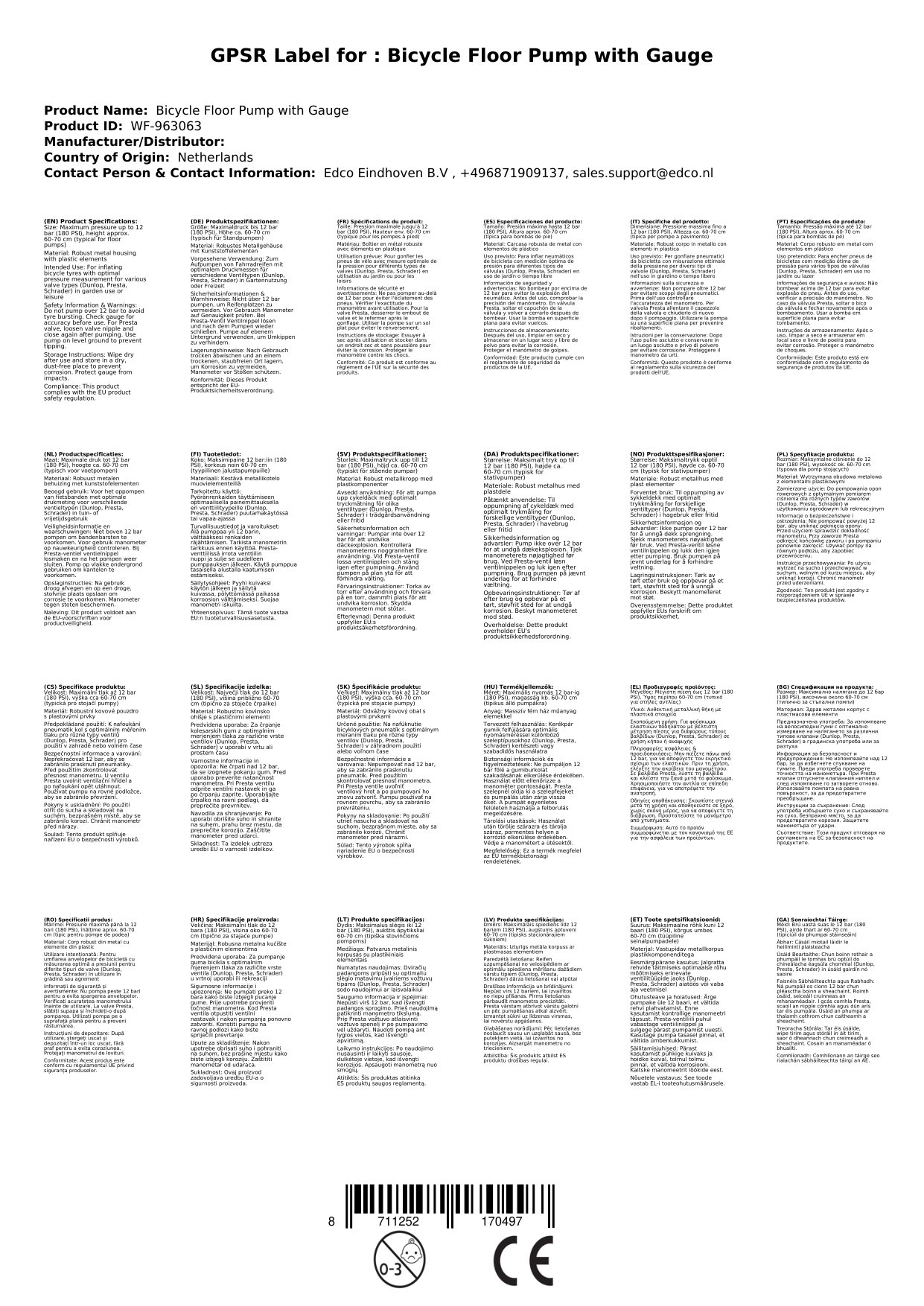 Diese stehende Fahrradpumpe ist eine Standpumpe, die Sie mit der Hand bedienen. Es hat ein Doppelventil. Mit diesen 2 verschiedenen Öffnungen ist die Pumpe für 3 Arten von Ventilen geeignet: