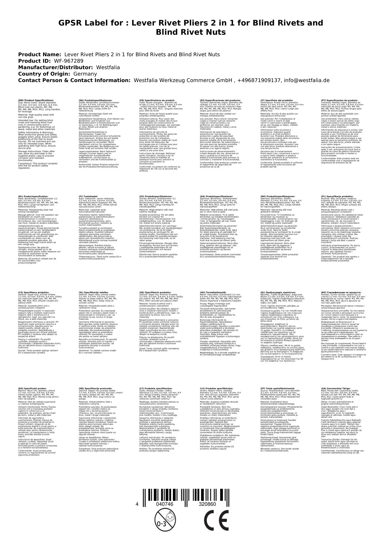 EU-Verantwortlicher Name: Westfalia Werkzeug Commerce GmbH