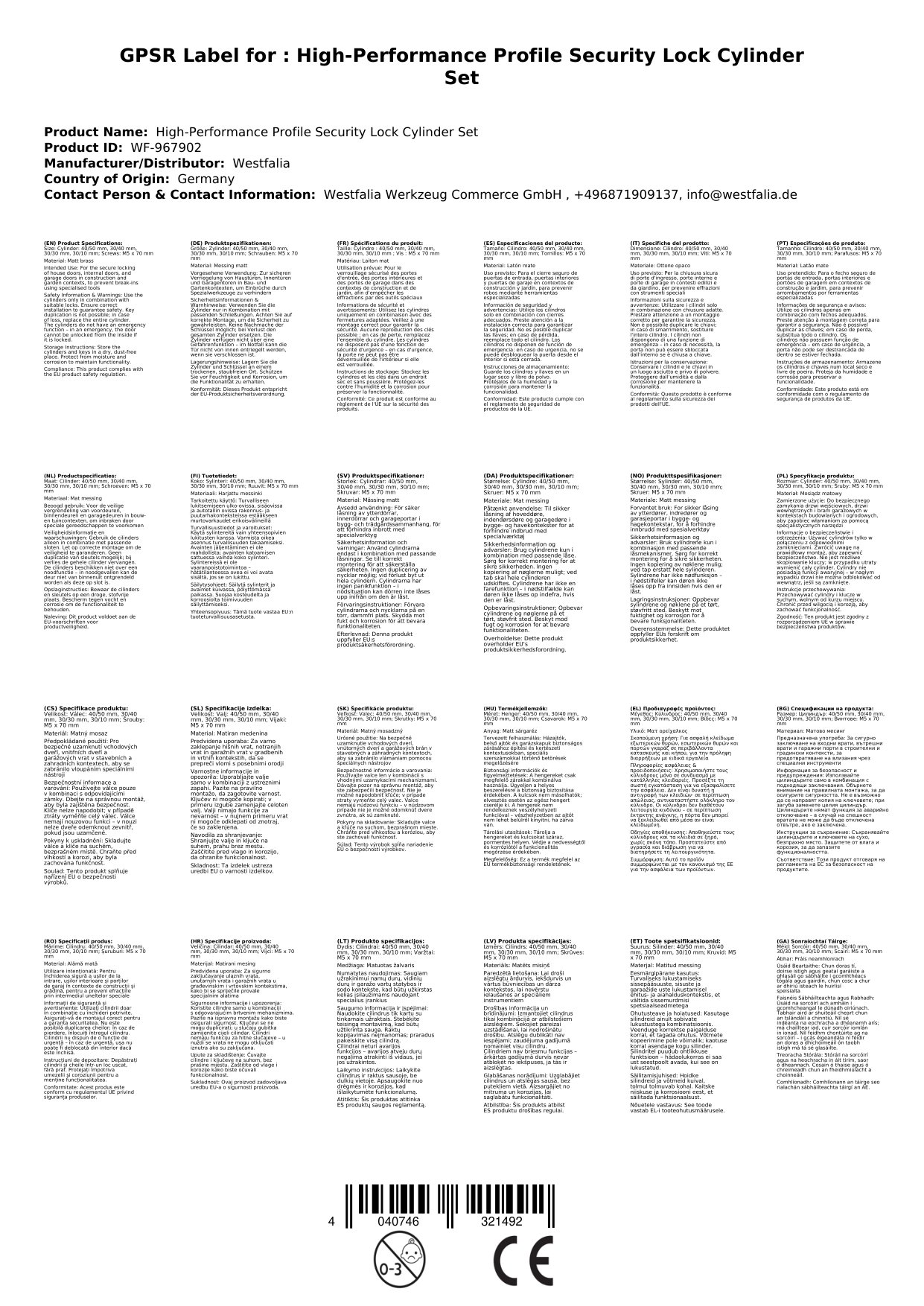 Hinweis: Zu diesem Set können keine Schlüssel bestellt oder nachgemacht werden. Die Zylinderverfügen nicht über eine Gefahrenfunktion