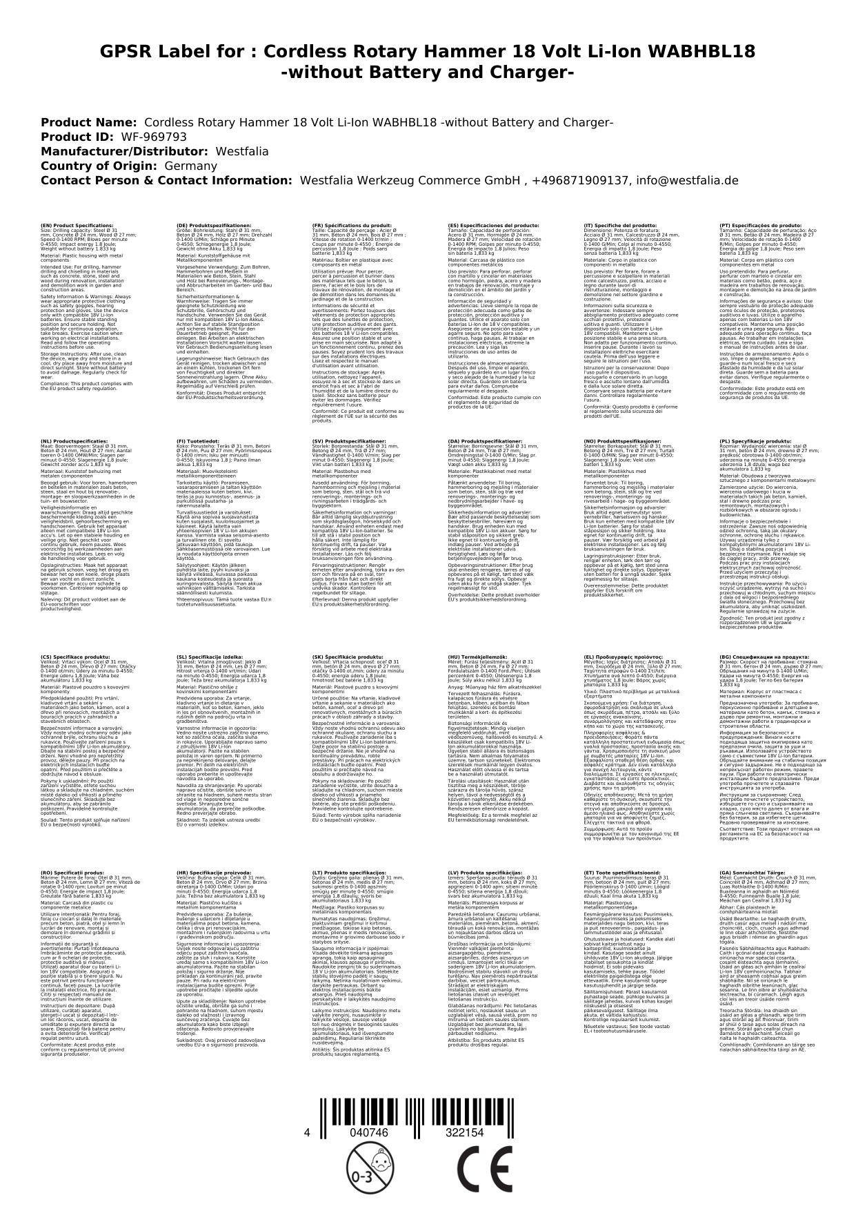 Der Bohrhammer wird ohne Akku und Ladegerät geliefert, ist aber vollständig kompatibel mit allen 18V Li-Ion Akkus aus dem Westfalia-System. Das macht ihn zur idealen Ergänzung für Ihre bestehende Werkzeugfamilie – nachhaltig und kosteneffizient.