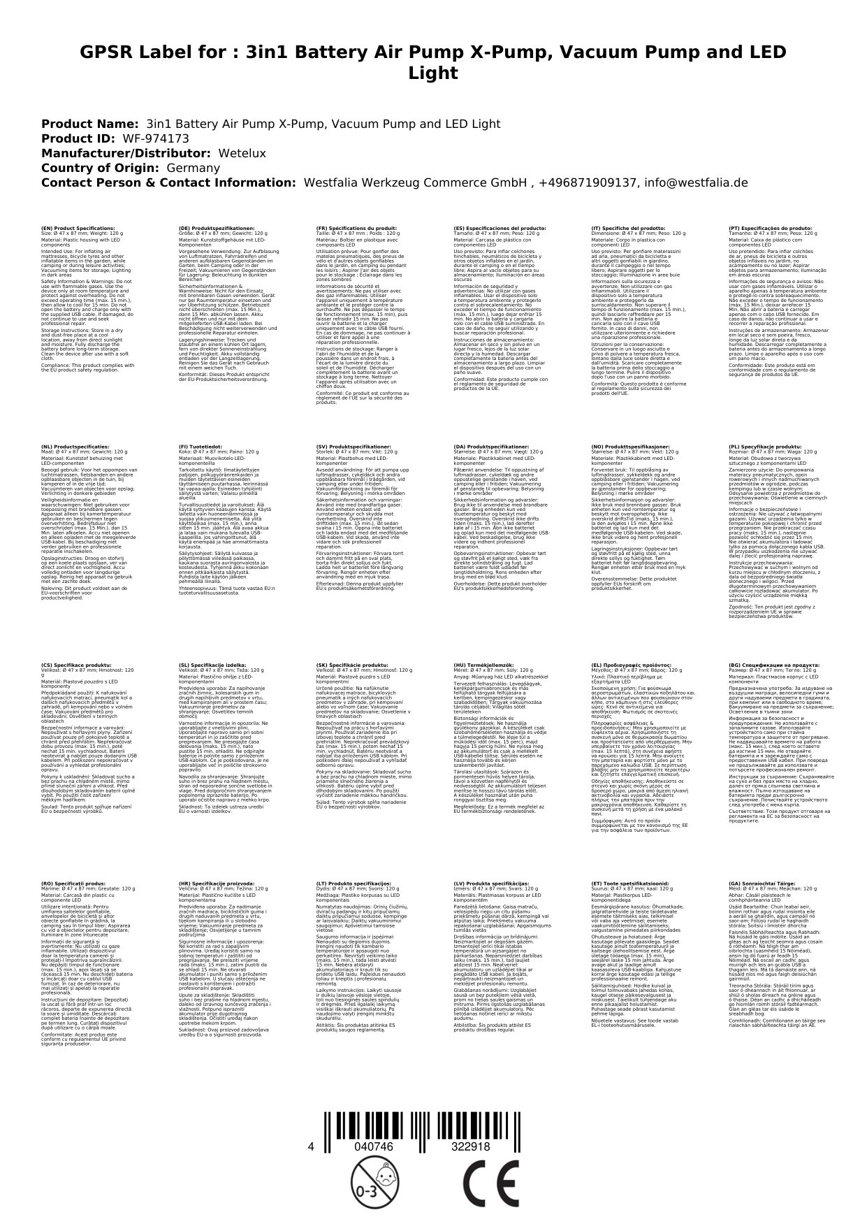 | Brand | Wetelux |