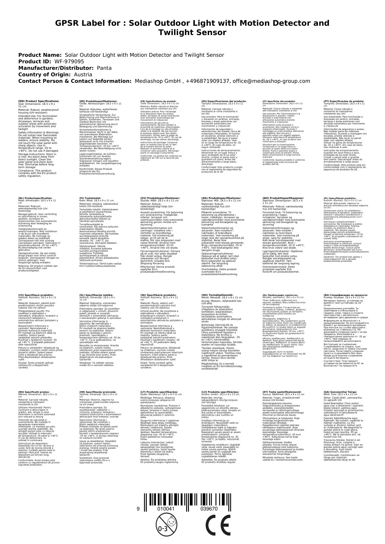 Panta Safe Light Solar sieht zudem aus wie eine professionelle Überwachungskamera! Der hochsensible Bewegungsmelder erkennt kleinste Bewegungen bis 7,5 Meter und überzeugt mit 8 Hochleistungs- LEDs, welche bis zu 60 Quadratmeter beleuchten. Der integrierte Dämmerungssensor aktiviert Panta Safe Light Solar nur, wenn es dunkel wird, und ist dann für 30 Sekunden aktiv. Damit wird verhindert, dass es unter Tags unnötig leuchtet. Panta Safe Light Solar ist extrem robust, hitze-, kälte- und UV-beständig!