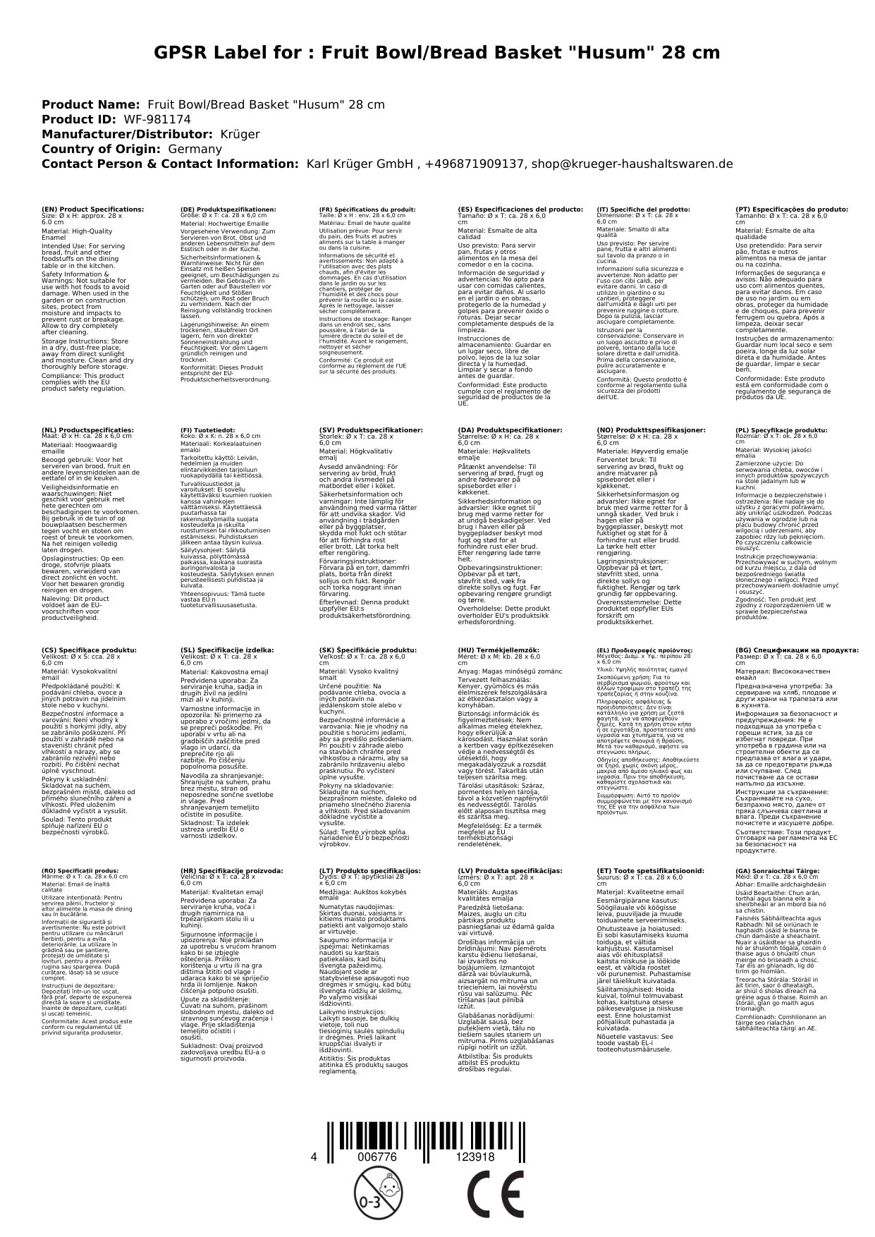 - 1 x Brotkorb/ Obstschale, Emaille, Weiß/ Blau, Ø 28 cm