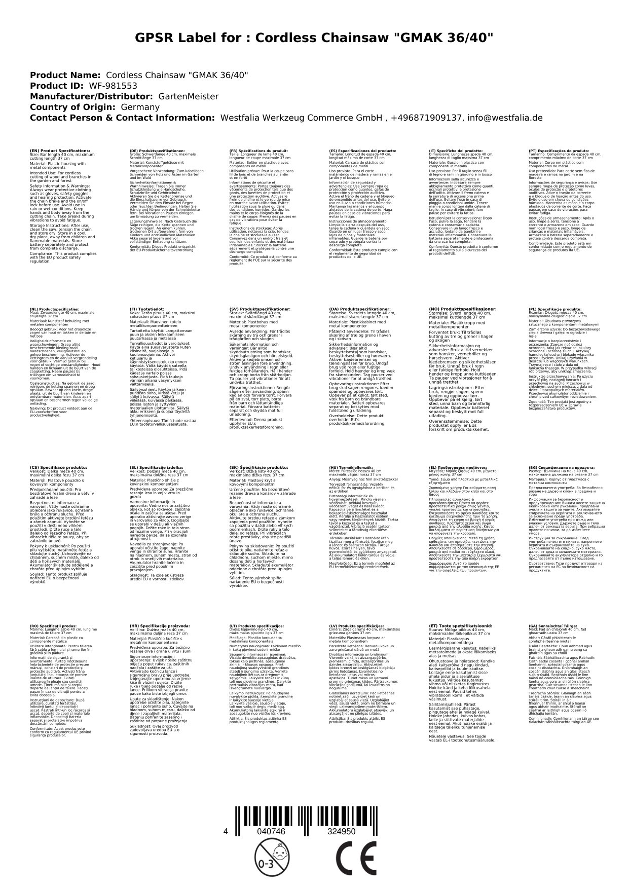 Investieren Sie in die Akku-Kettensäge "GMAK 36/40" und erleben Sie die Kombination aus Leistung, Komfort und Flexibilität. Machen Sie Ihre Sägearbeiten effizienter und genießen Sie die Vorteile einer hochwertigen, kabellosen Kettensäge!