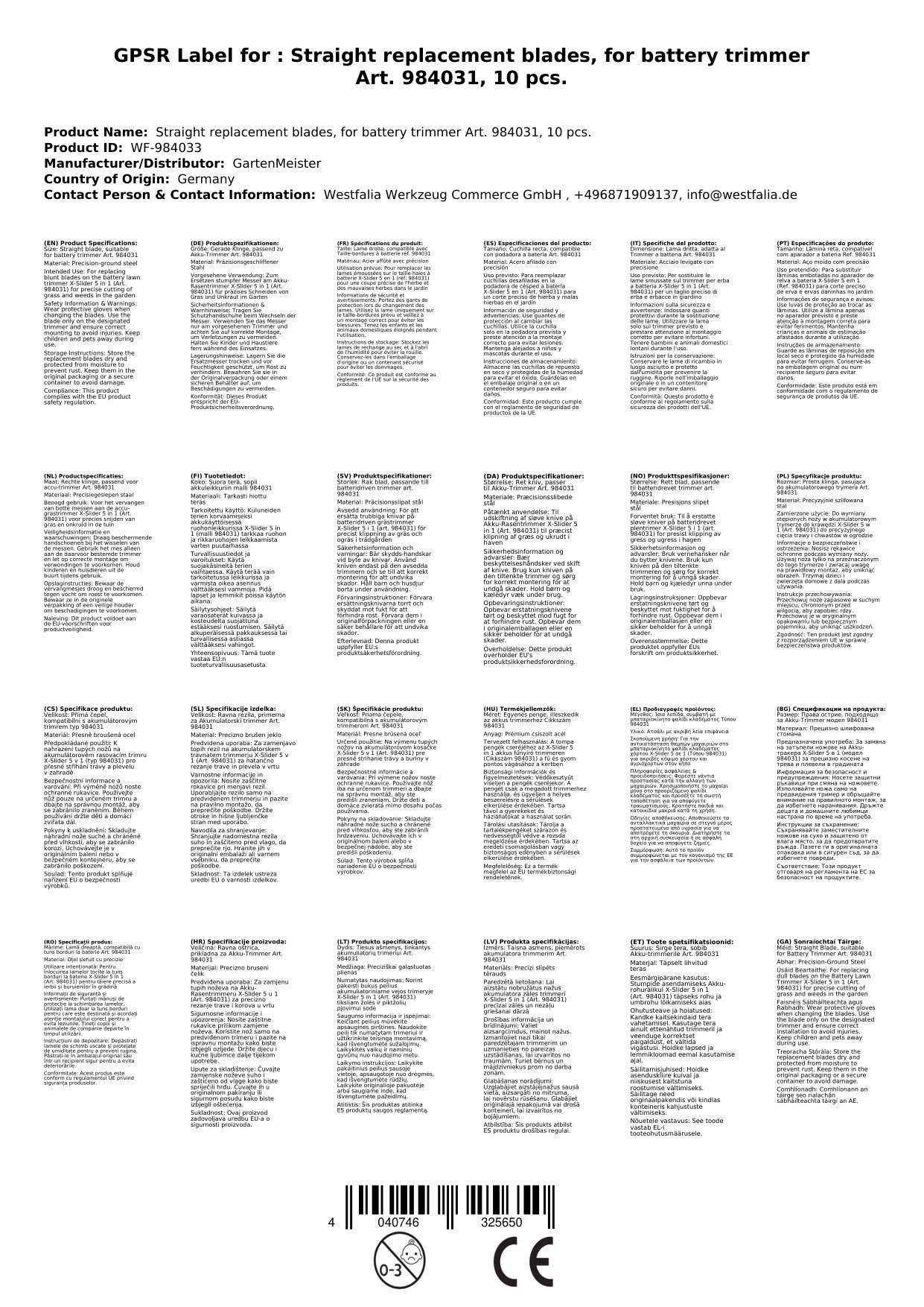 Ersatzmesser gerade, zu Akku-Trimmer Art. 984031, 10 St.