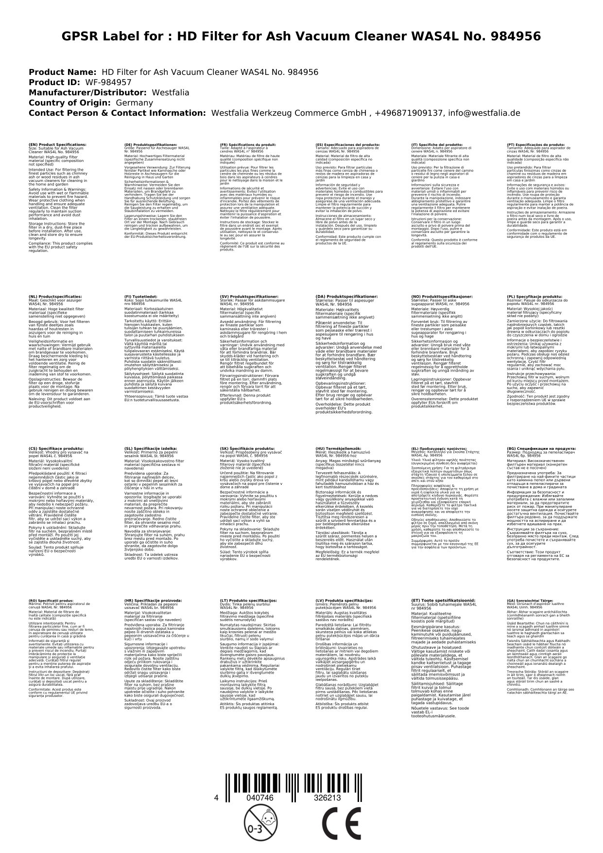 Mit dem hochwertigen Ersatz HD-Filter bleibt Ihr Aschesauger immer auf voller Leistung. Der Filter fängt auch feinste Partikel wie Kaminasche oder Holzreste zuverlässig auf und sorgt für saubere Luft in Ihrem Zuhause.