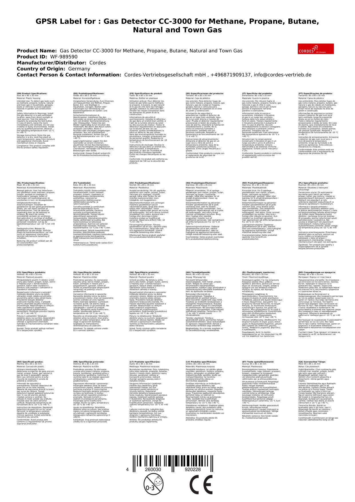 - Meldet zuverlässig Gase wie Propan-, Methan-, Butan- und Erd- und Stadtgas