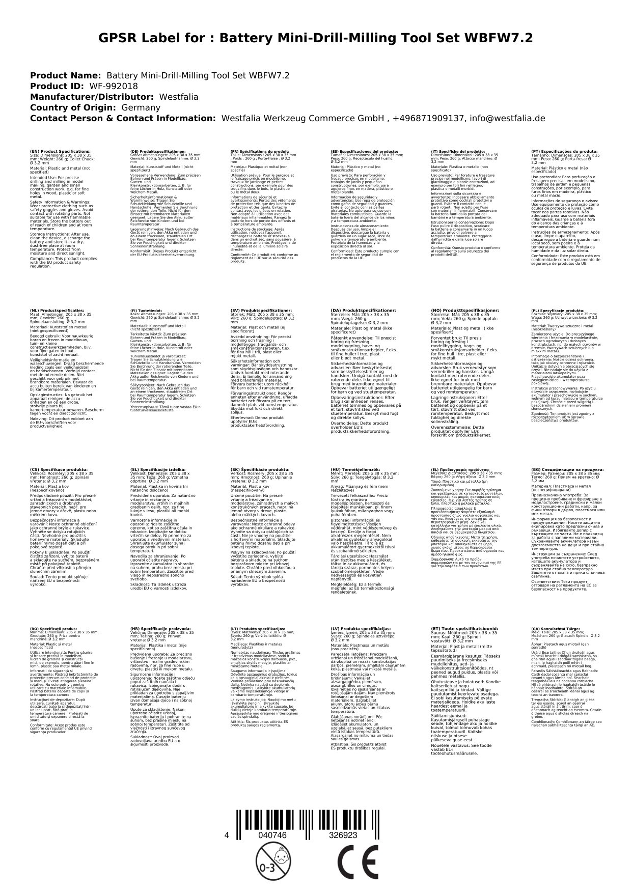 - 1 x Akku Mini-Bohr-Fräswerkzeug-Set WBFW7.2