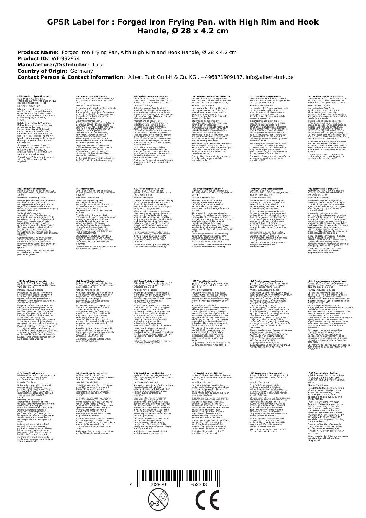 Abmessungen: Bodenstärke: 2,5 mm, Pfannenboden Ø 21,5 cm